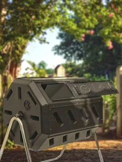 A common problem with all composters is that you must transport material across the yard which can be heavy. The drum can be leveraged off of the base and rolled to your desired location: No heavy lifting! And the 16″ twist lid makes access very easy while also sealing in precious compost tea and keeping out animals. Fresh compost can be made in just 14 days and you only have to turn it once a week or after addition of new material. And to make things easier, it comes completely assembled so you can start composting immediately.