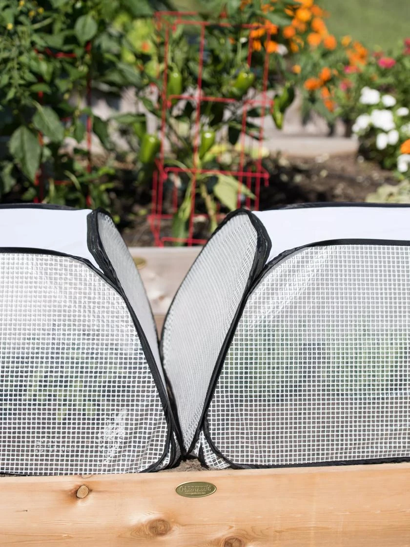 Garden row covers protect transplants from cold temperatures and chilly winds, so you can set plants out in the garden weeks earlier in spring. You’ll be amazed at how much faster plants grow — which means an earlier harvest! The top is made from mesh to allow warm air to escape, preventing overheating, and it also lets water in. Made from durable, reinforced greenhouse fabric. Sets up in seconds; flattens for easy off-season storage. Loops at the base let you anchor it to the ground with Earth Staples, sold separately.